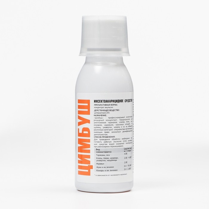 Цимбуш — эффективен в борьбе против таких видов членистоногих как: тараканы, муравьи, блохи, комары, мухи, крысиные клещи, так же рекомендован в борьбе с чешуйницами, уховертками, мокрицами и постельными клопами. Эмульгаторы введенные в рецептуру препарата образуют стабильную эмульсию, это обеспечивает более быстрый нок-даун эффект и уже через 2 минуты после использования вы будете наблюдать первую гибель вредителей