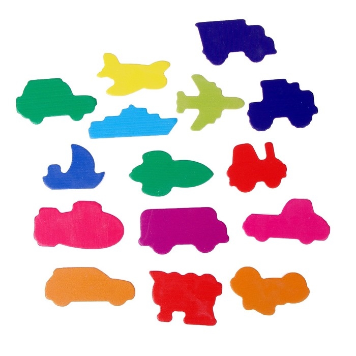 - Детали отличаются по цвету или форме, поэтому подходят для знакомства с названиями цветов и геометрических фигур.