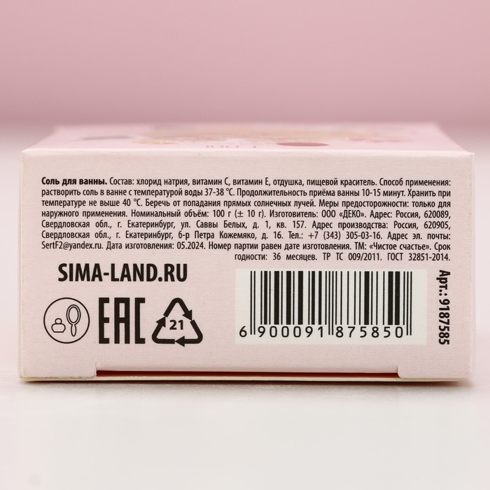 Соль для ванны «С Новым Годом!», 100 г, аромат ванили, ЧИСТОЕ СЧАСТЬЕ