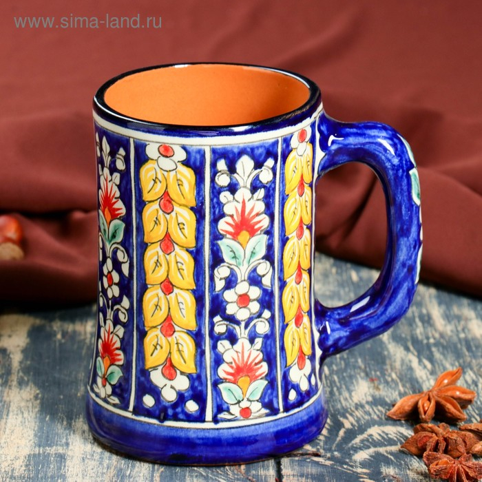 Кружка Риштанская Керамика "Цветы", 500 мл, синий
