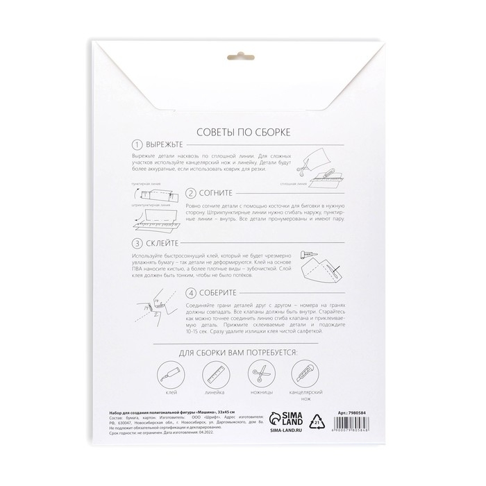 Полигональная фигура из бумаги «Машина», 40 х 10 х 21 см