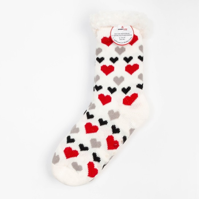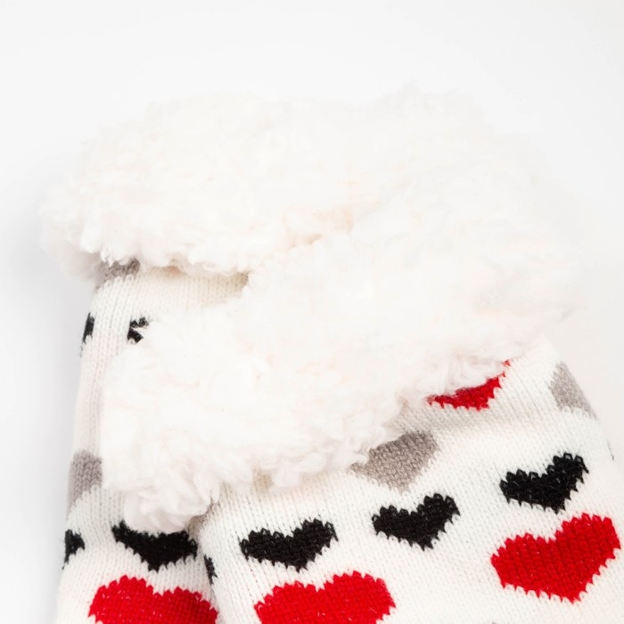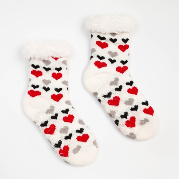 Носки женские с мехом внутри «Сердечки», цвет белый, размер 23-25 (36-40)