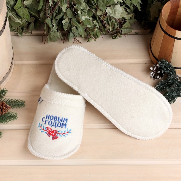 Тапочки для бани с вышивкой "С Новым годом" белые