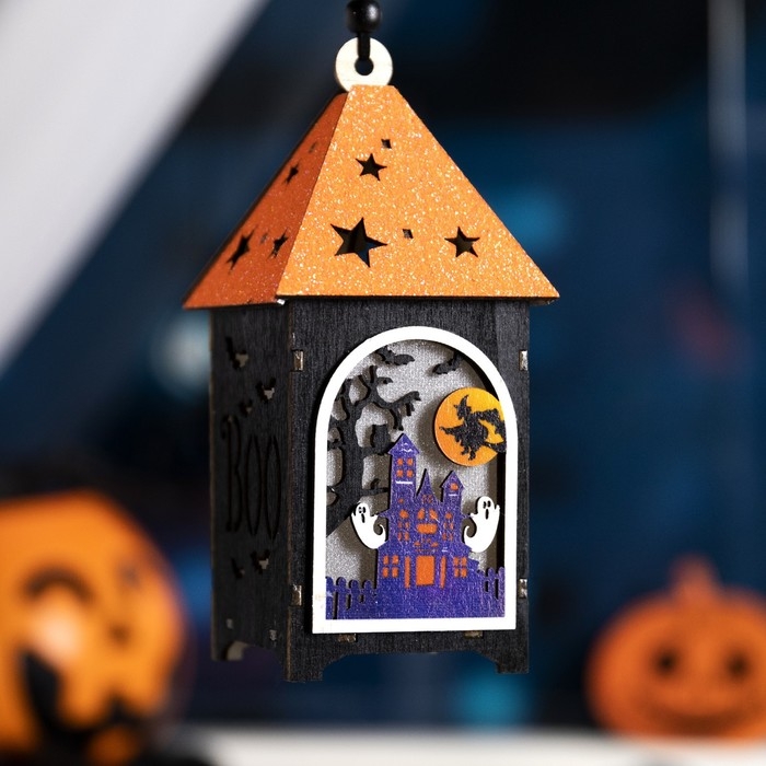 Светодиодная подвеска «Чёрная башня призраков» 6.5 × 17.5 × 6.5 см, пластик, батарейки LR1130х3 (в комплекте), свечение тёплое белое