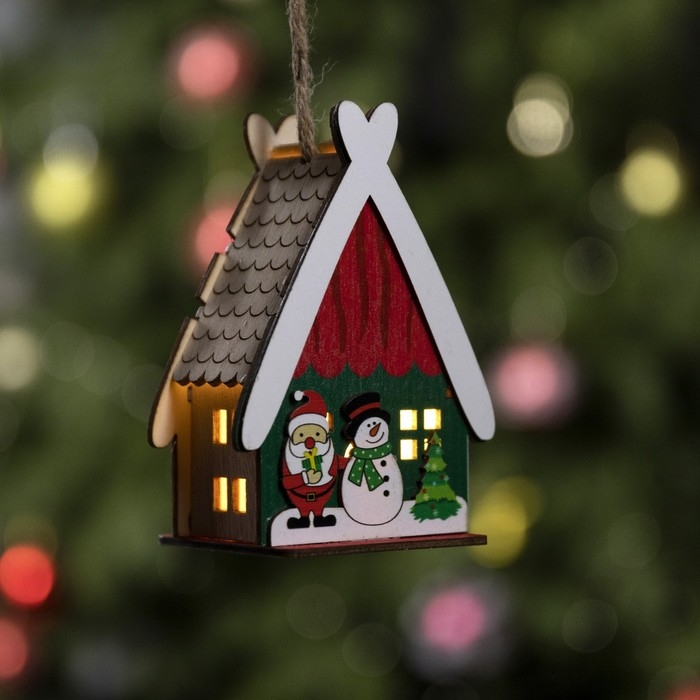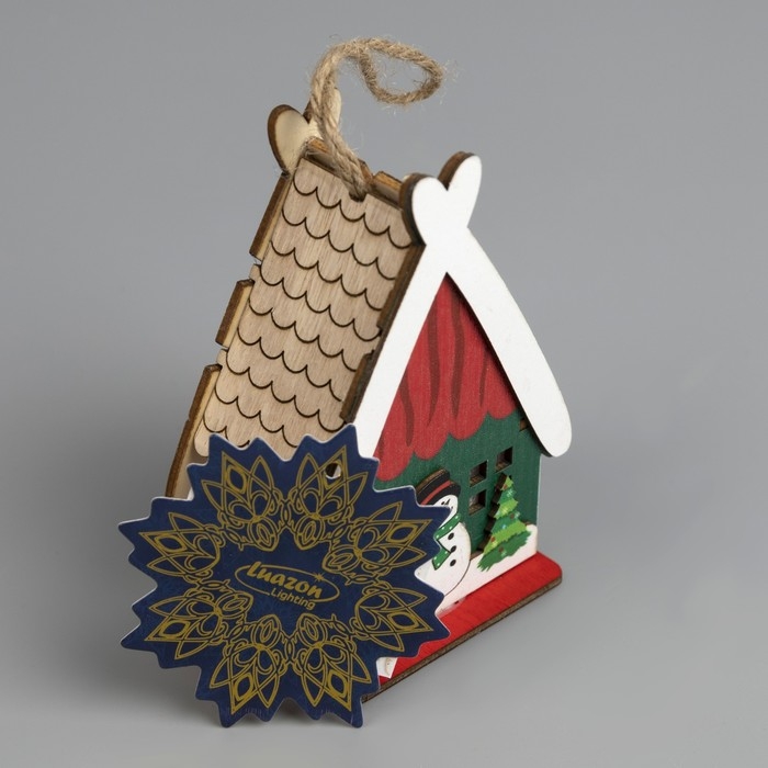 Ёлочная игрушка «Домик со снеговиком», от батареек, свечение тёплое белое