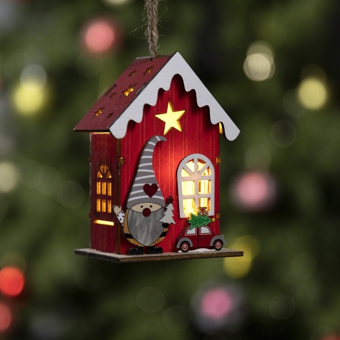 Ёлочная игрушка «Амбар эльфа», от батареек, свечение тёплое белое
