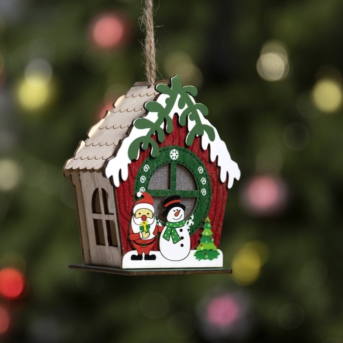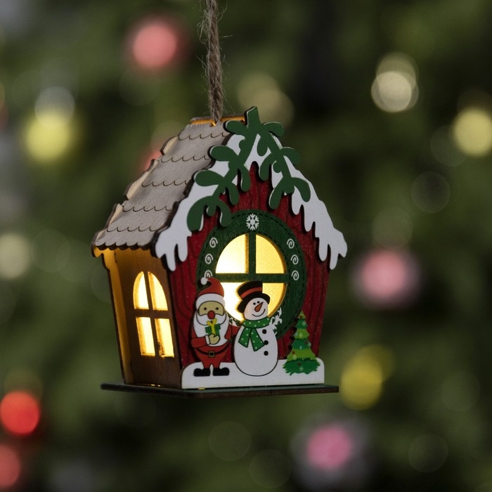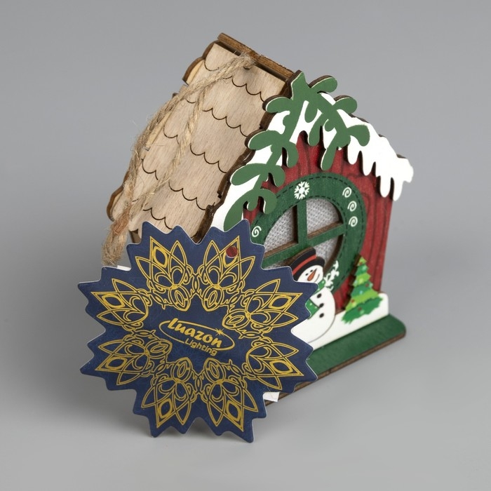 Ёлочная игрушка «Избушка со снеговиком», от батареек, свечение тёплое белое