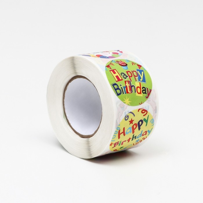 Наклейки в рулоне "С Днем Рождения!",500 шт,3,8 х 3,8 см