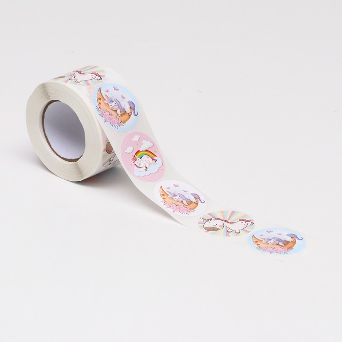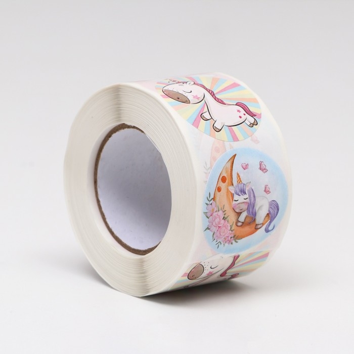 Наклейки в рулоне "Единорожки",500 шт,3,8 х 3,8 см
