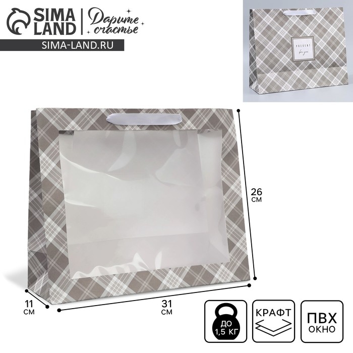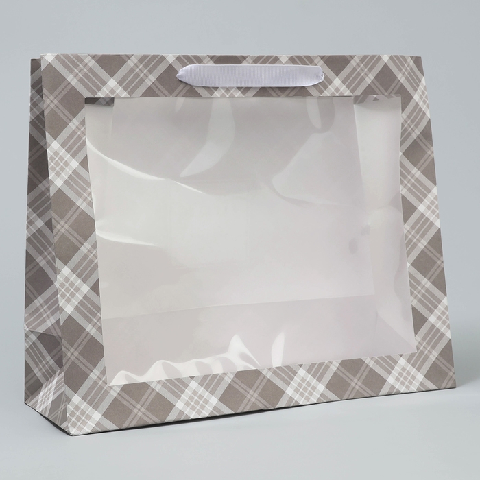 Пакет подарочный крафтовый с пластиковым окном, упаковка, «Мужской», 31 х 26 х 10 см