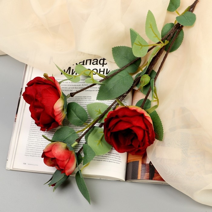 Цветы искусственные "Роза пионовидная галант" 7х61 см, красный