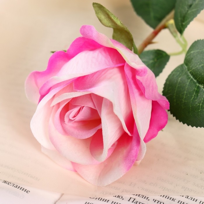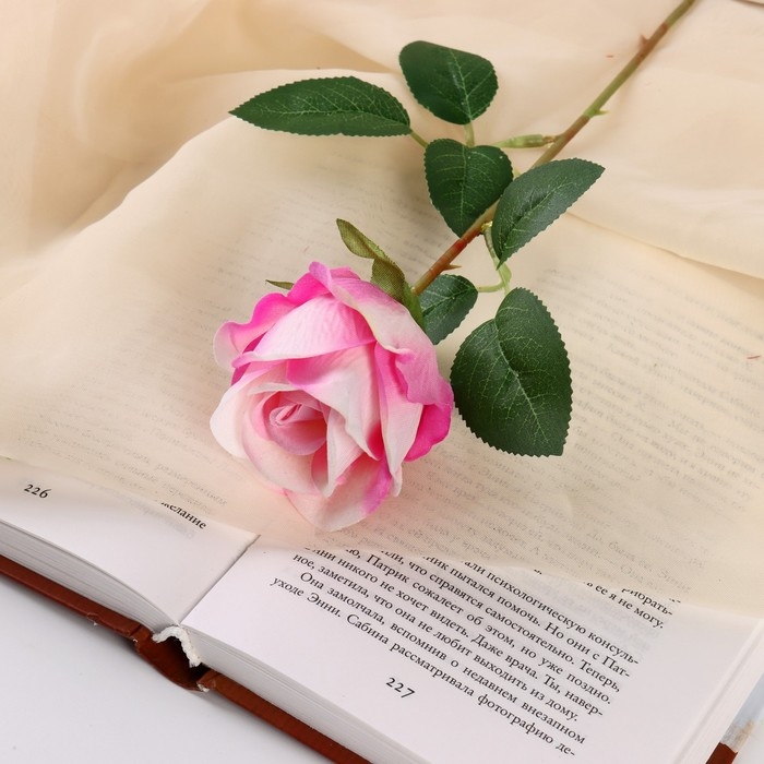 Цветы искусственные "Роза обаяние" 6х46 см, бело-розовый