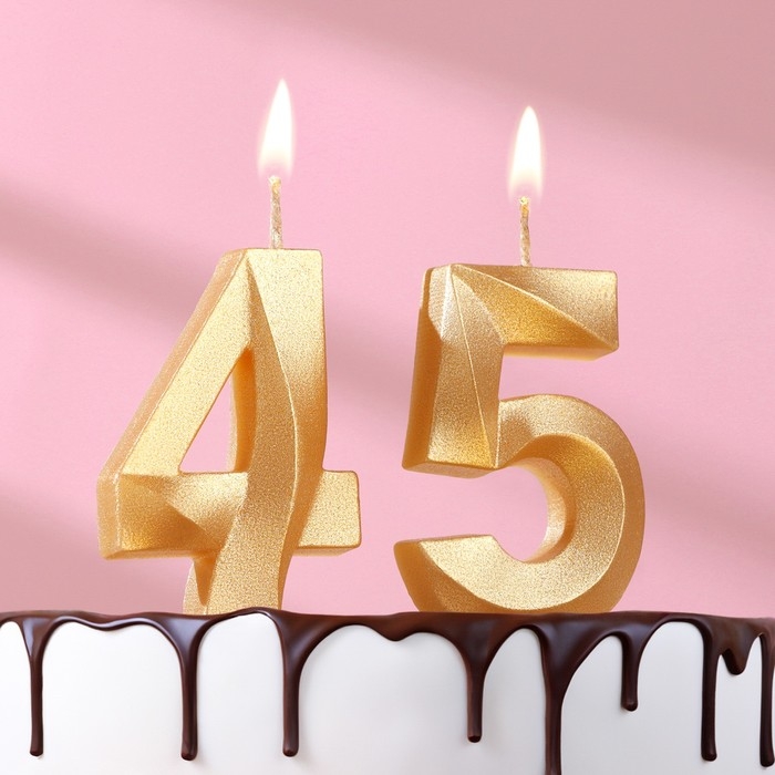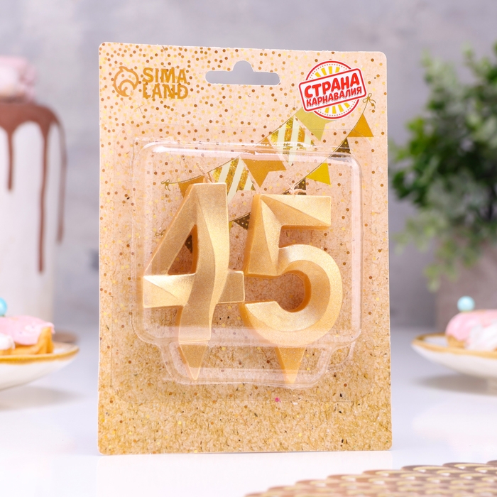 Свеча в торт юбилейная "Грань" (набор 2 в 1), цифра 45, цифра 54, золотой металлик, 6,5 см