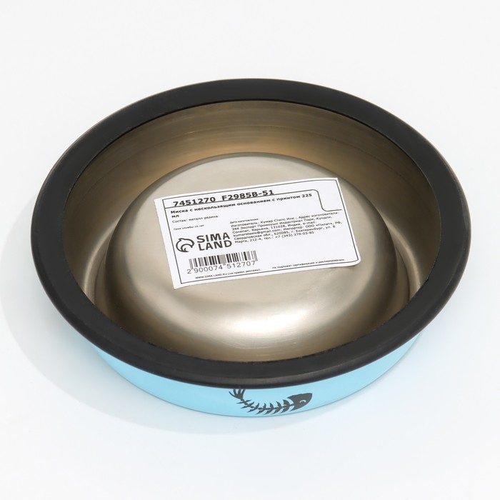 Миска с нескользящим основанием с принтом, 225 мл, голубая