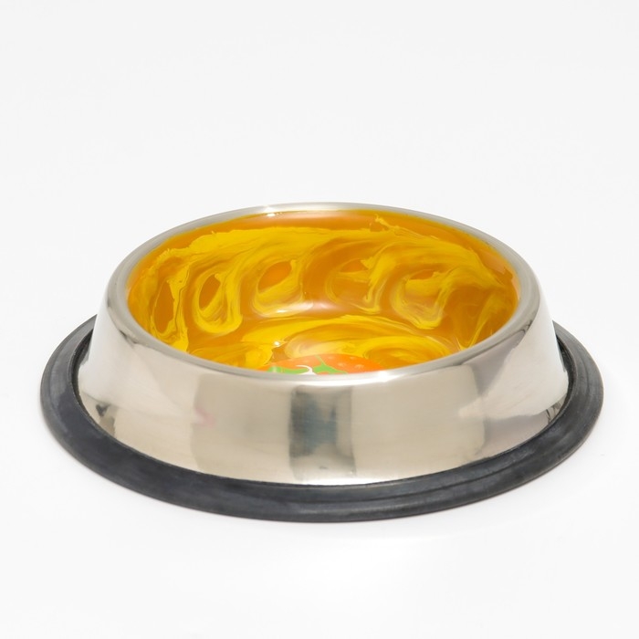 Прорезиненное основание предотвращает скольжение миски по поверхности и защищает пол от царапин.