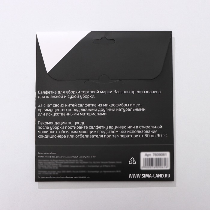 Салфетка торговой марки Raccoon предназначена для сухой и влажной уборки.