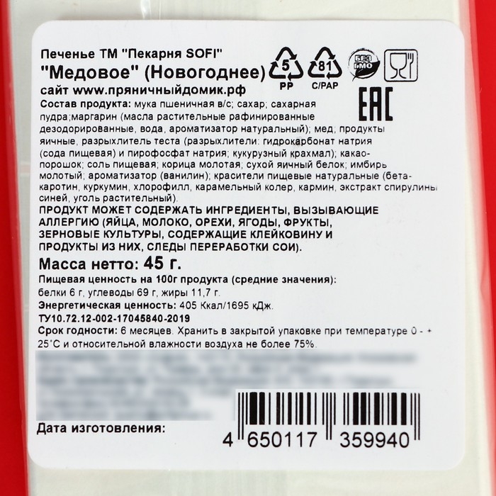 Новый год. Печенье медовое "Новогоднее", 45 г