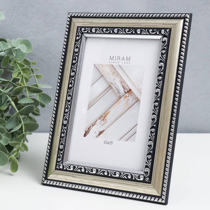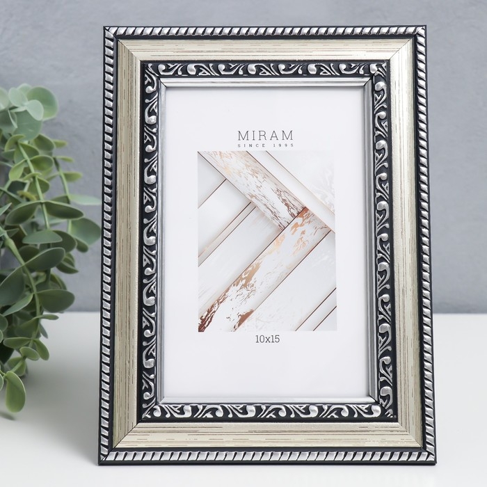 Фоторамка пластик "МИРАМ" 10х15 см 644821-4, серебро (пластиковый экран)