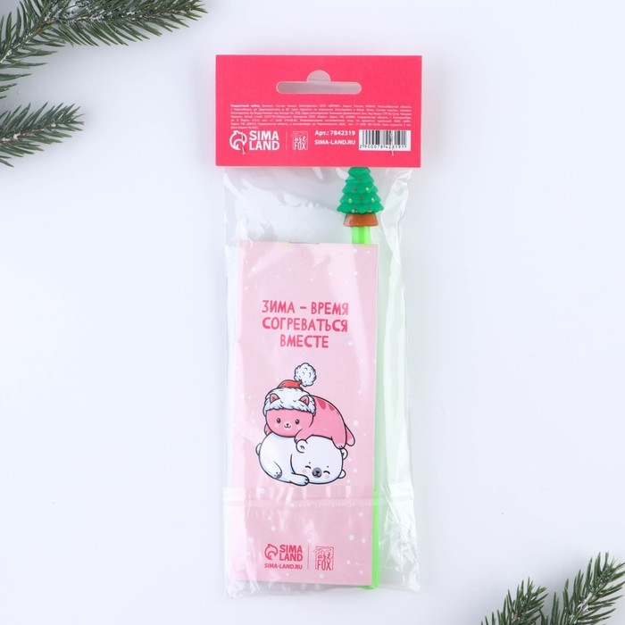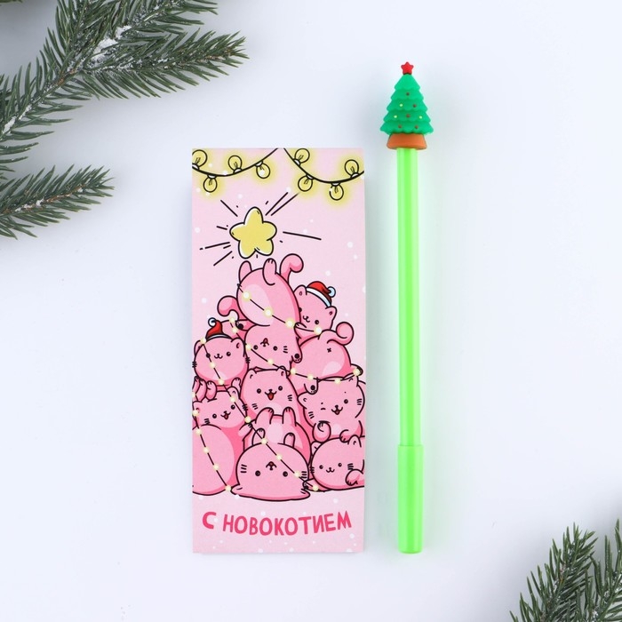 Подарочный набор новогодний, блокнот и фигурная ручка «С новокотием»