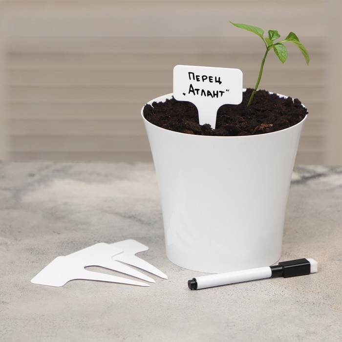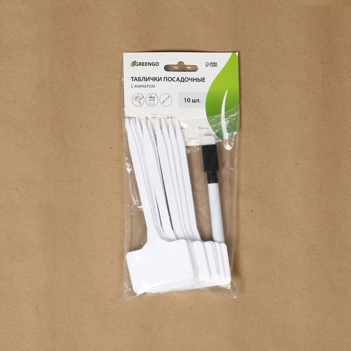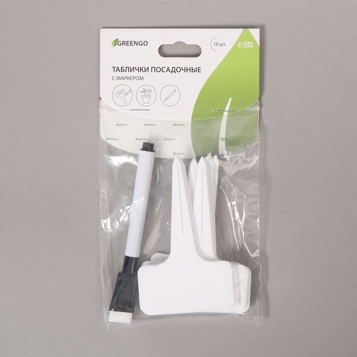 Таблички садовые для маркировки, 15 см, набор 10 шт + маркер, пластик, белые, Greengo