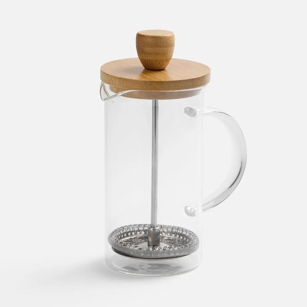 френч-пресс - боросиликатное стекло; нержавеющая сталь; бамбук; коробка - микрогофрокартон, плотность 385 г/м²