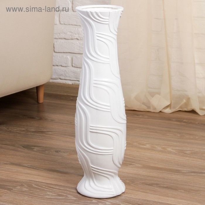Ваза керамика напольная "Геометрия" изгибы, 60 см, белый