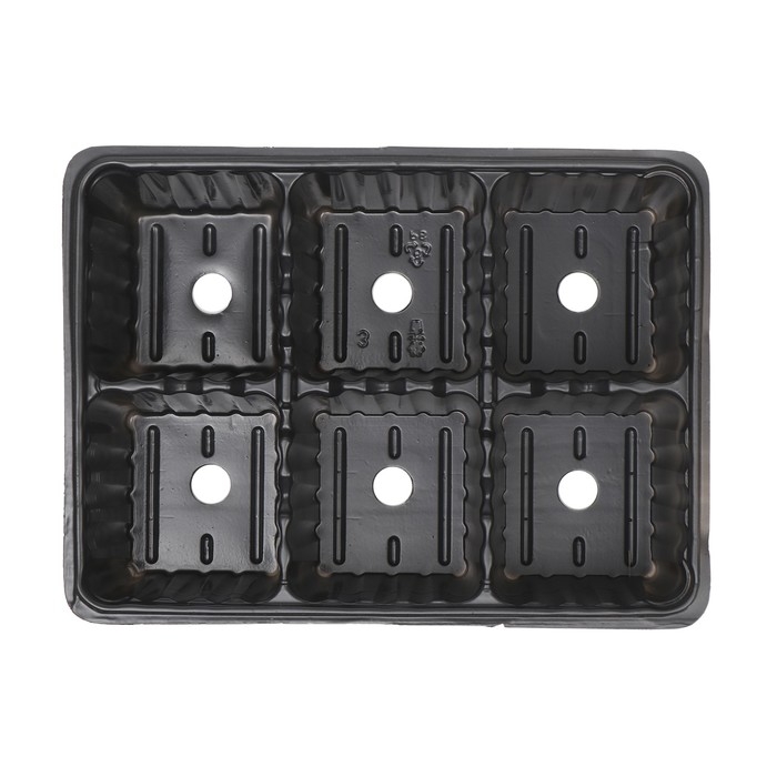 Кассета для рассады, на 6 ячеек, по 120 мл, пластиковая, чёрная, 18 × 13 × 6 см, в наборе 10 шт., Greengo