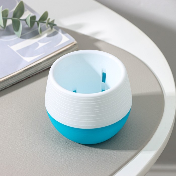Горшок для цветов с поддоном «Япония», 125 мл, d=8 см, h=6,5 см, цвет белый-бирюзовый