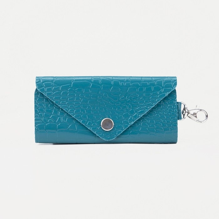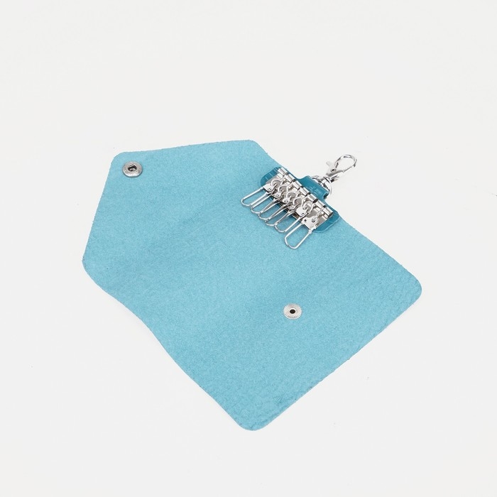 Ключница на кнопке, длина 11 см, 7 карабинов, цвет бирюзовый