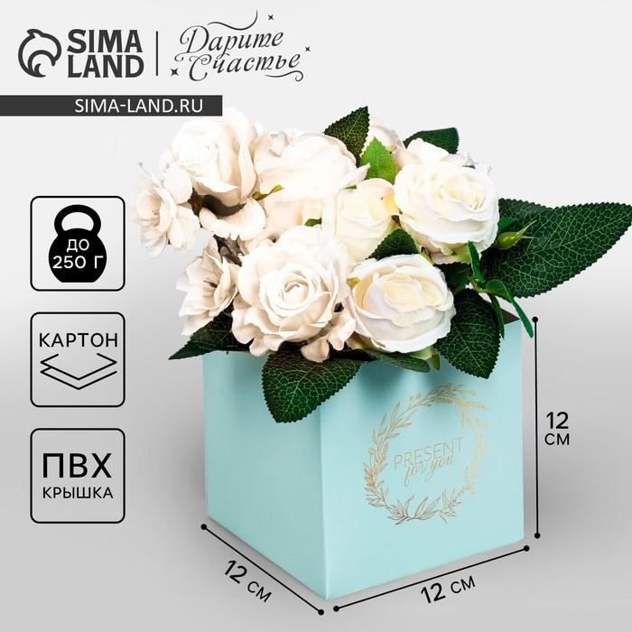 Коробка подарочная для цветов с PVC крышкой, упаковка, «Present», 12 х 12 х 12 см