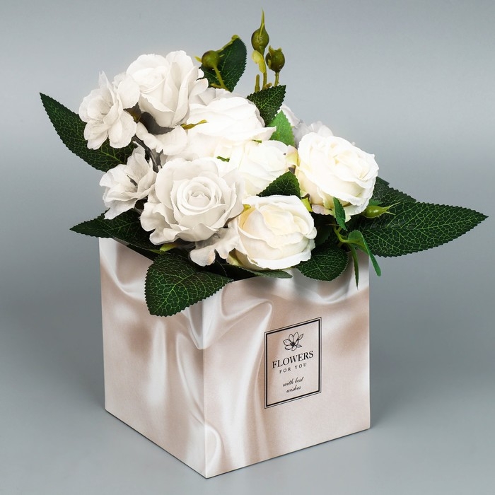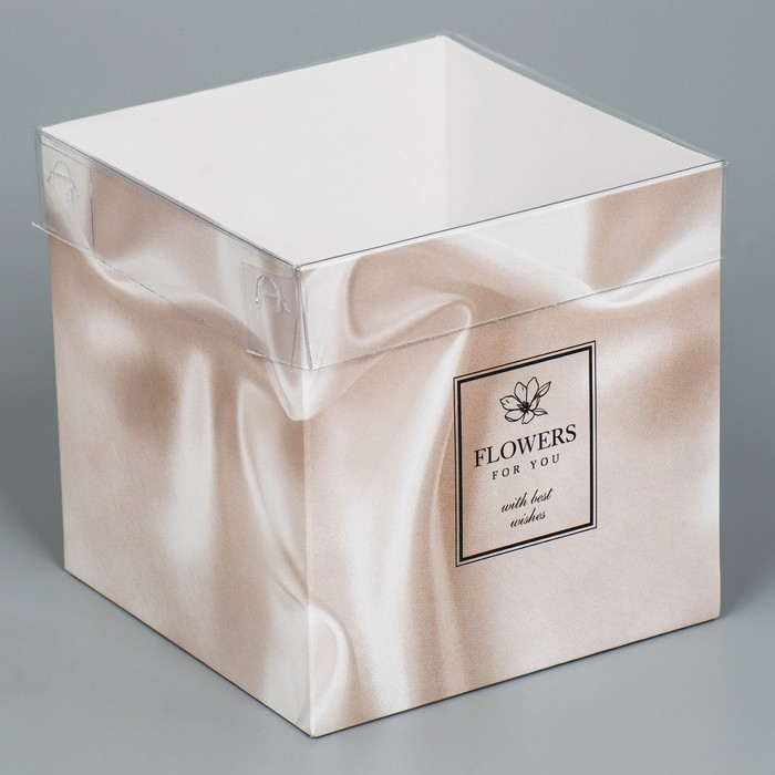 Коробка подарочная для цветов с PVC крышкой, упаковка, «Шёлк», 12 х 12 х 12 см