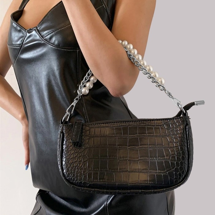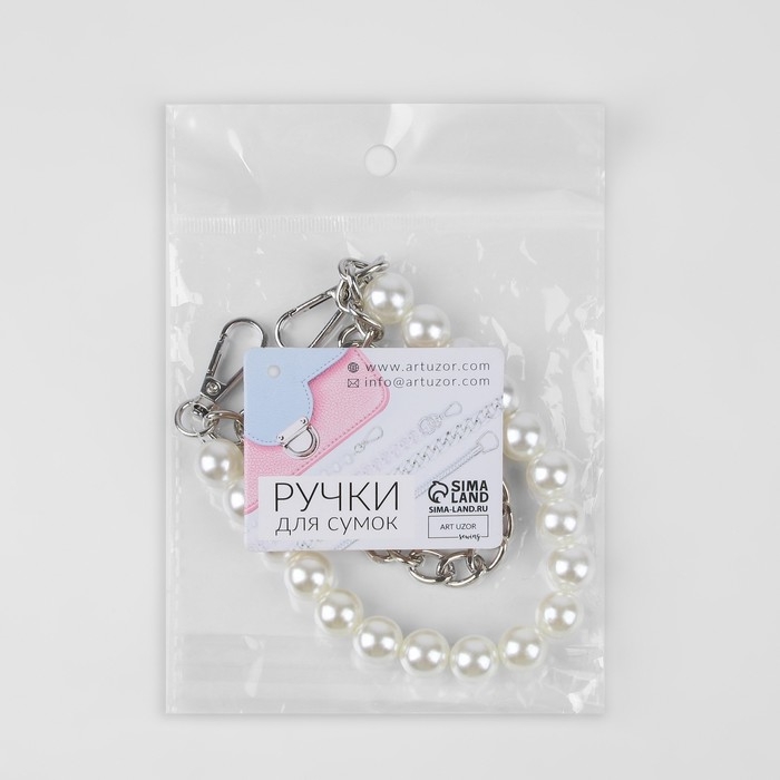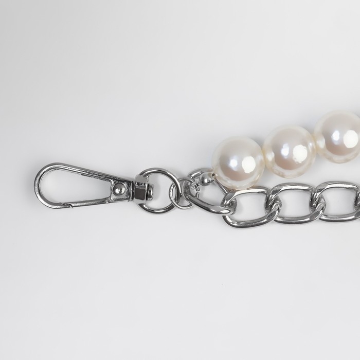 Цепочка для сумки, с жемчугом, d = 13 ± 1 мм, 2,3 × 16 × 11,5 мм, 29 ± 1 см, цвет серебряный