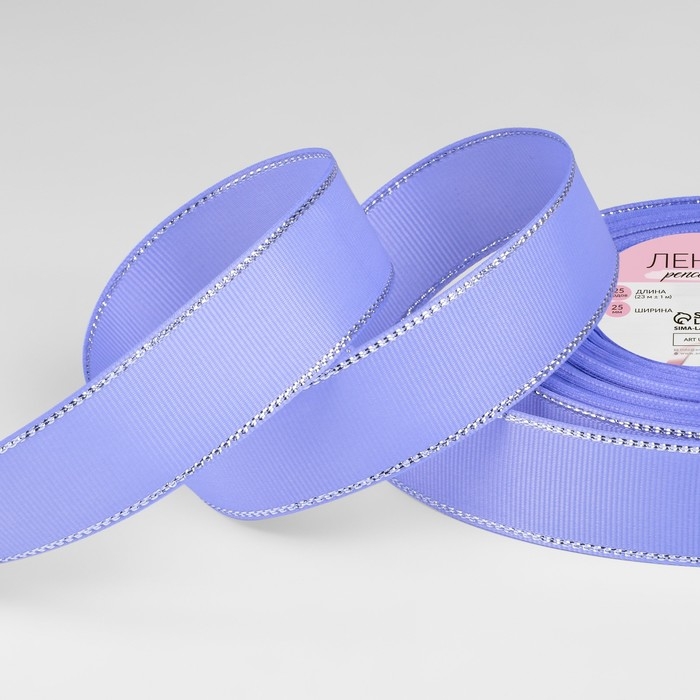 Лента репсовая «Серебряные нити», 25 мм × 23 ± 1 м, цвет сиреневый №004