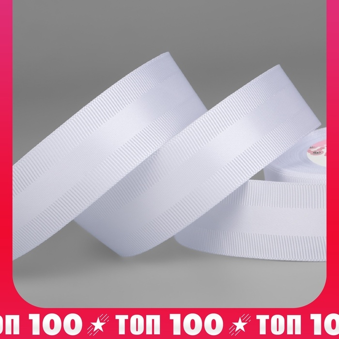 Лента декоративная, репсовая/атласная, 25 мм, 18 ± 1 м, цвет белый №001