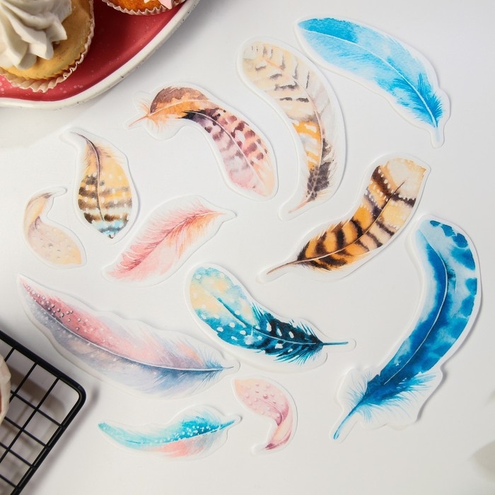 Вафельные картинки съедобные «Перья» для капкейков, торта KONFINETTA, 12 шт.