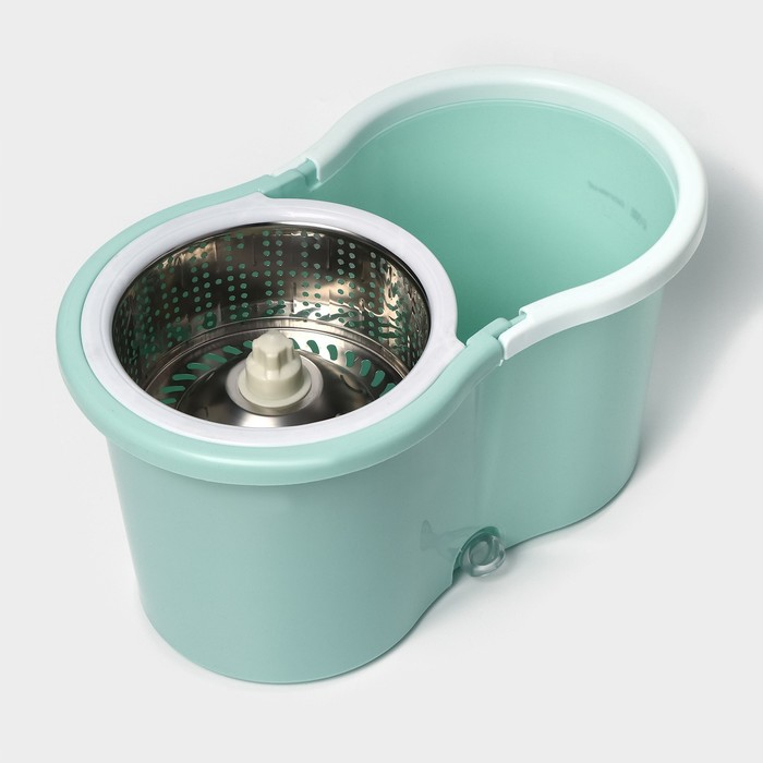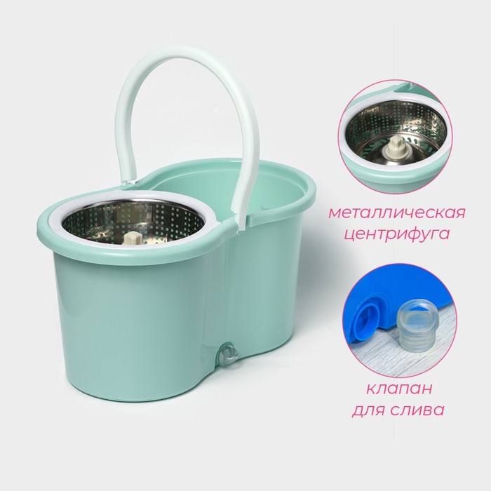 Швабра с отжимом и ведром с металлической центрифугой Доляна, 14 л, запасная насадка из микрофибры, колёсики, МИКС