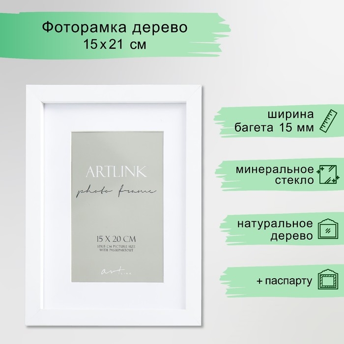 Фоторамка МДФ "Ellis" 15x20 см, с паспарту, белый