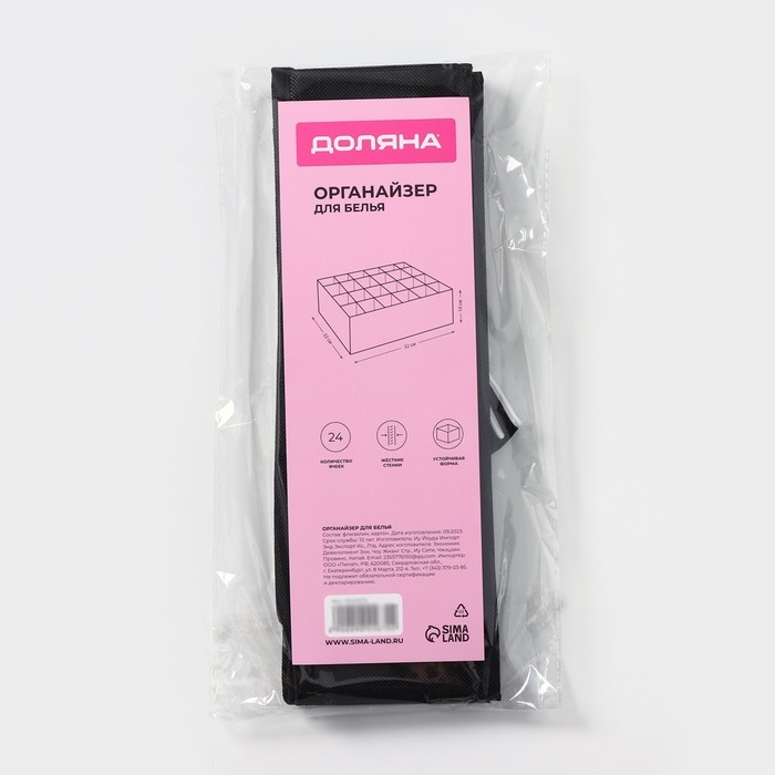Органайзер для хранения белья Доляна «Смарт», 24 ячейки, 32×32×10 см, цвет чёрный