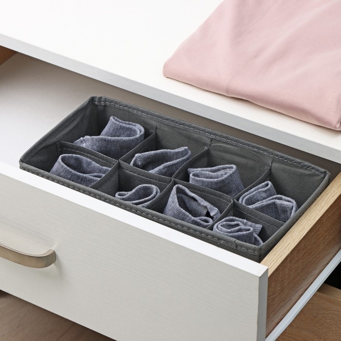 Органайзер для хранения белья Доляна «Смарт», 8 ячеек, 28,5×13,5×10 см, цвет серый