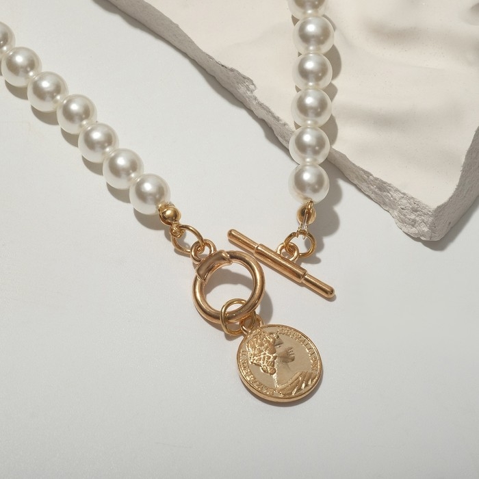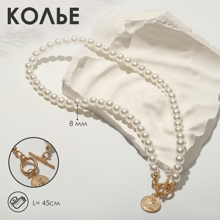 Колье «Жемчуг» круг, шар №10, цвет белый в золоте, L= 45 см