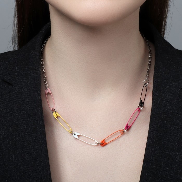 Колье «Булавки», цветное в серебре, L= 45 см