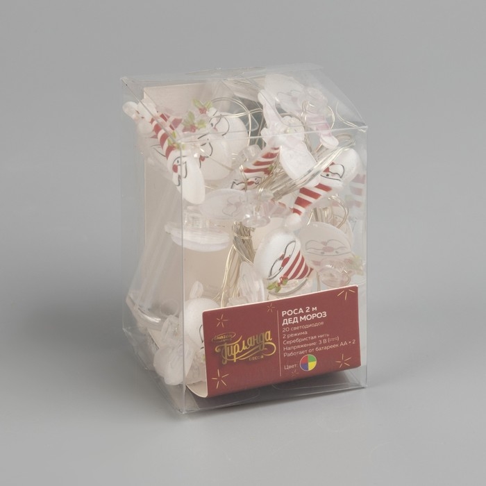 Гирлянда «Нить» 2 м роса с насадками «Дед Мороз», IP20, серебристая нить, 20 LED, 2 режима, батарейки ААх2 (нет в комплекте), свечение мульти