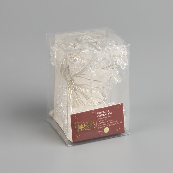 Гирлянда «Нить» 2 м роса с насадками «Снежинка», IP20, серебристая нить, 20 LED, 2 режима, батарейки ААх2 (нет в комплекте), свечение тёплое белое