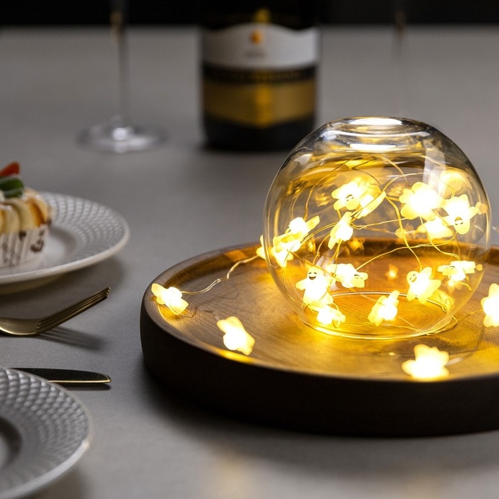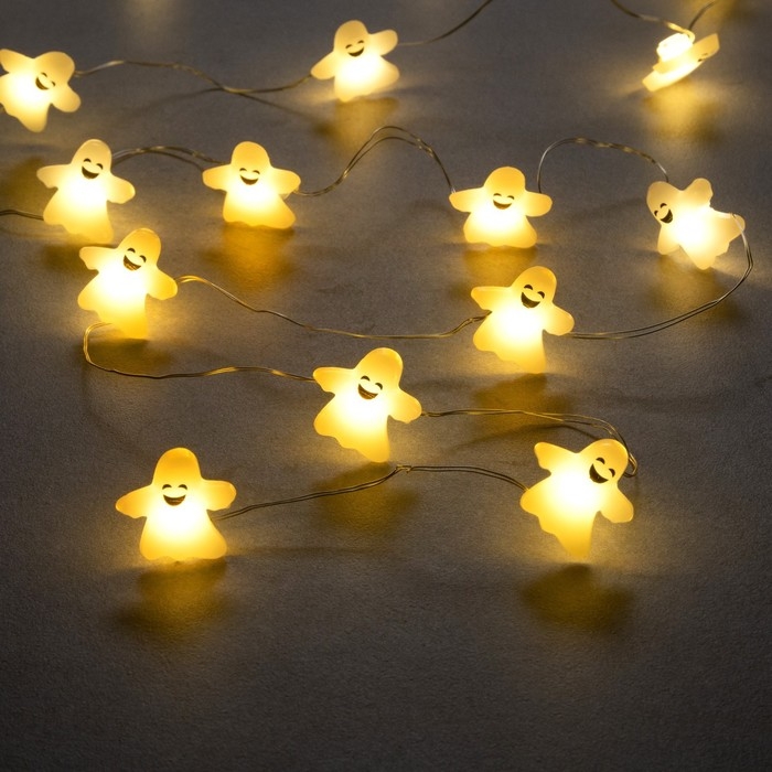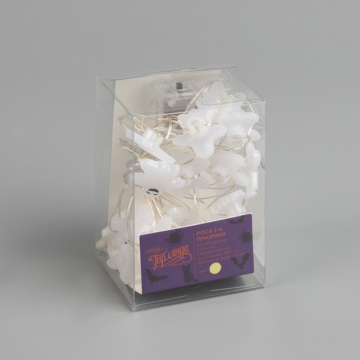 Гирлянда «Нить» 2 м роса с насадками «Призрак», IP20, серебристая нить, 20 LED, свечение тёплое белое, 2 режима, ААх2