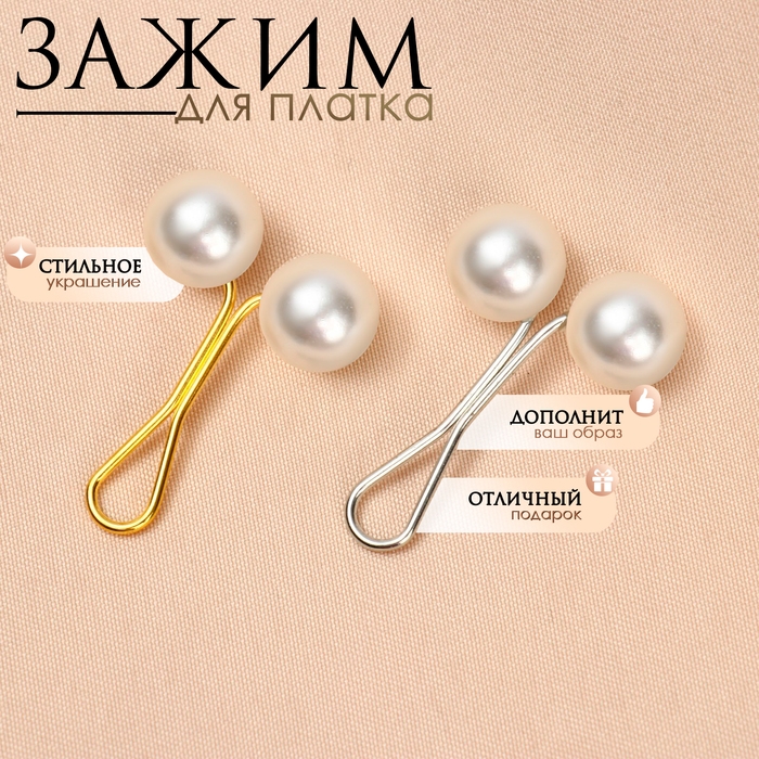 Зажим для платка «Жемчужинка», цвет белый в серебре