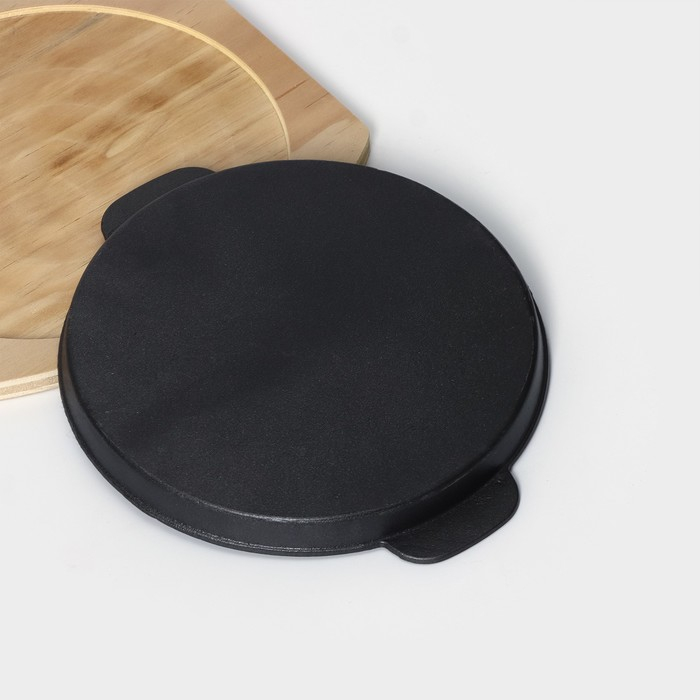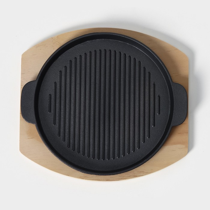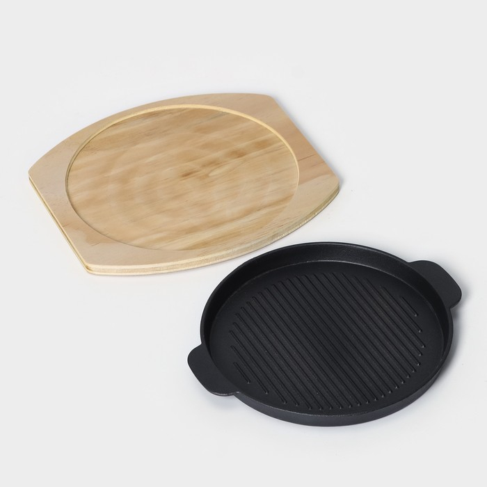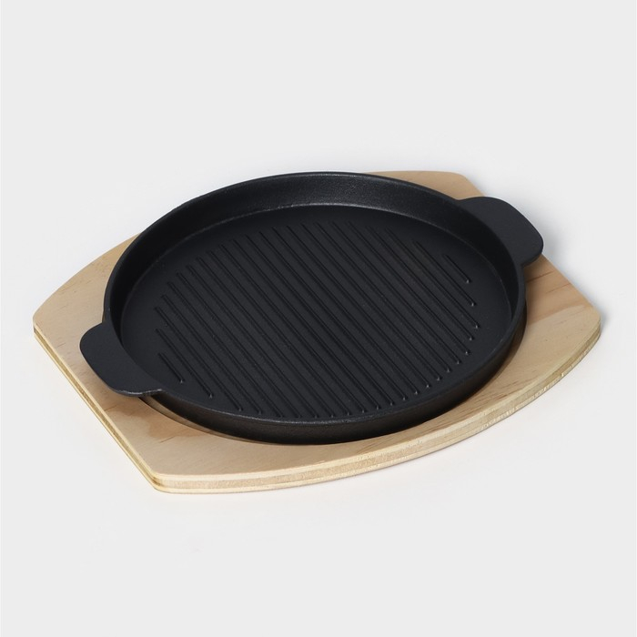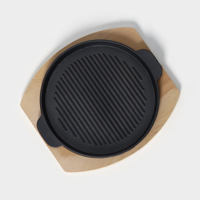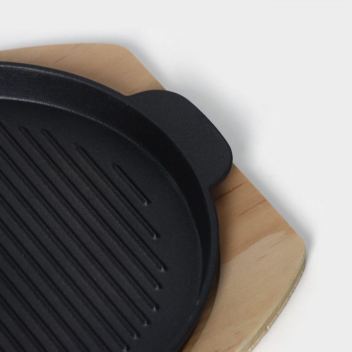 Сковорода чугунная на деревянной подставке «Круг. Гриль», 25×21,3 см, цвет чёрный