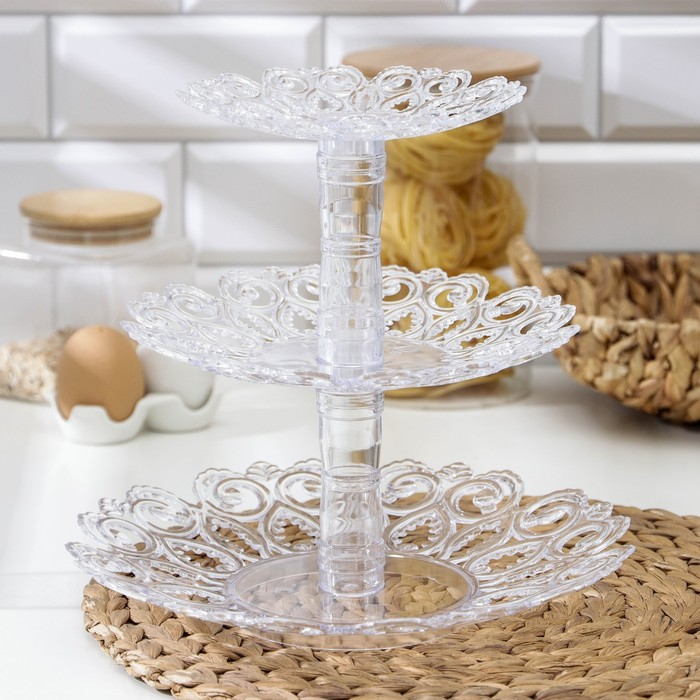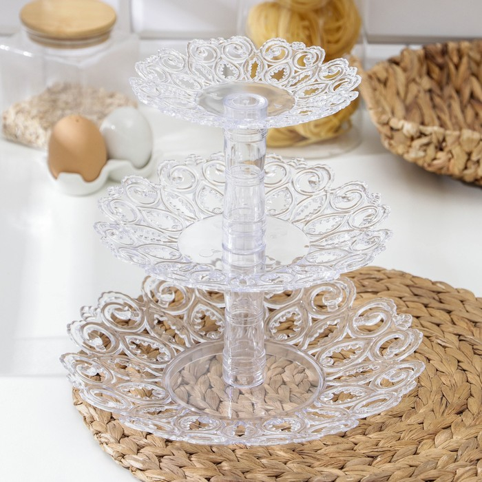 Фруктовница «Мелодия», 3-х ярусная 16 см, 21 см, 27 см, цвет прозрачный