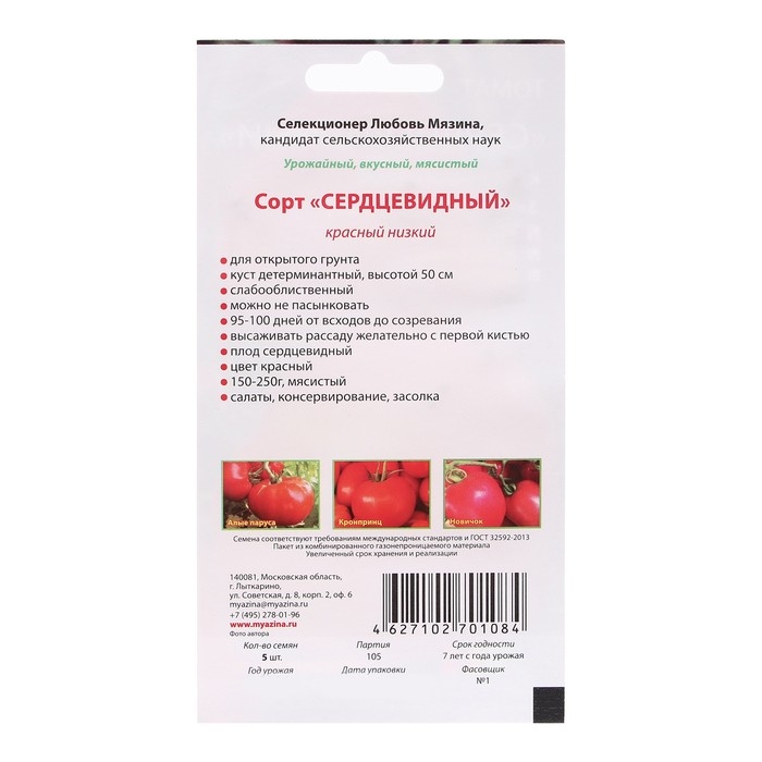 Семена Томат "Сердцеед красный низкорослый", 5 шт