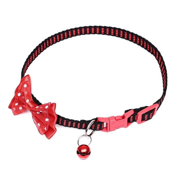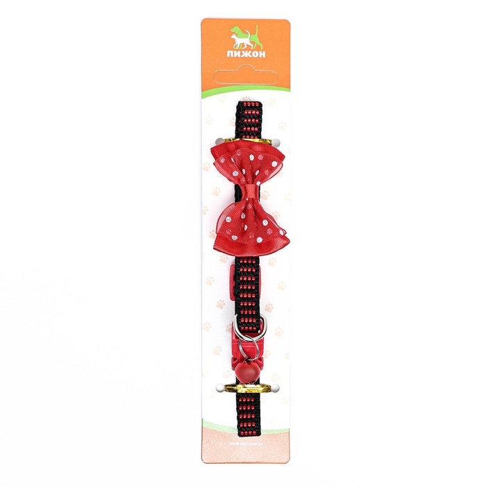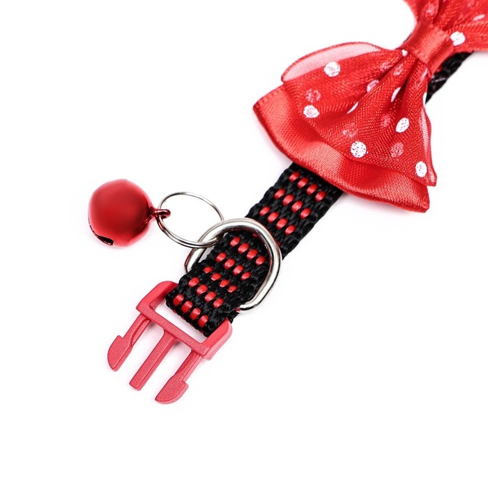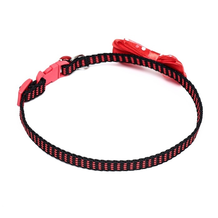 Ошейник текстильный с бантиком и бубенчиком, 30 х 1 см, красный