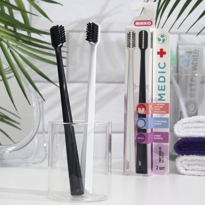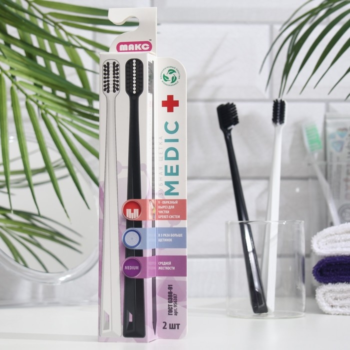 Зубная щетка «Медик» для брекет-систем, биоразлагаемая, черный + белый, 2 шт.